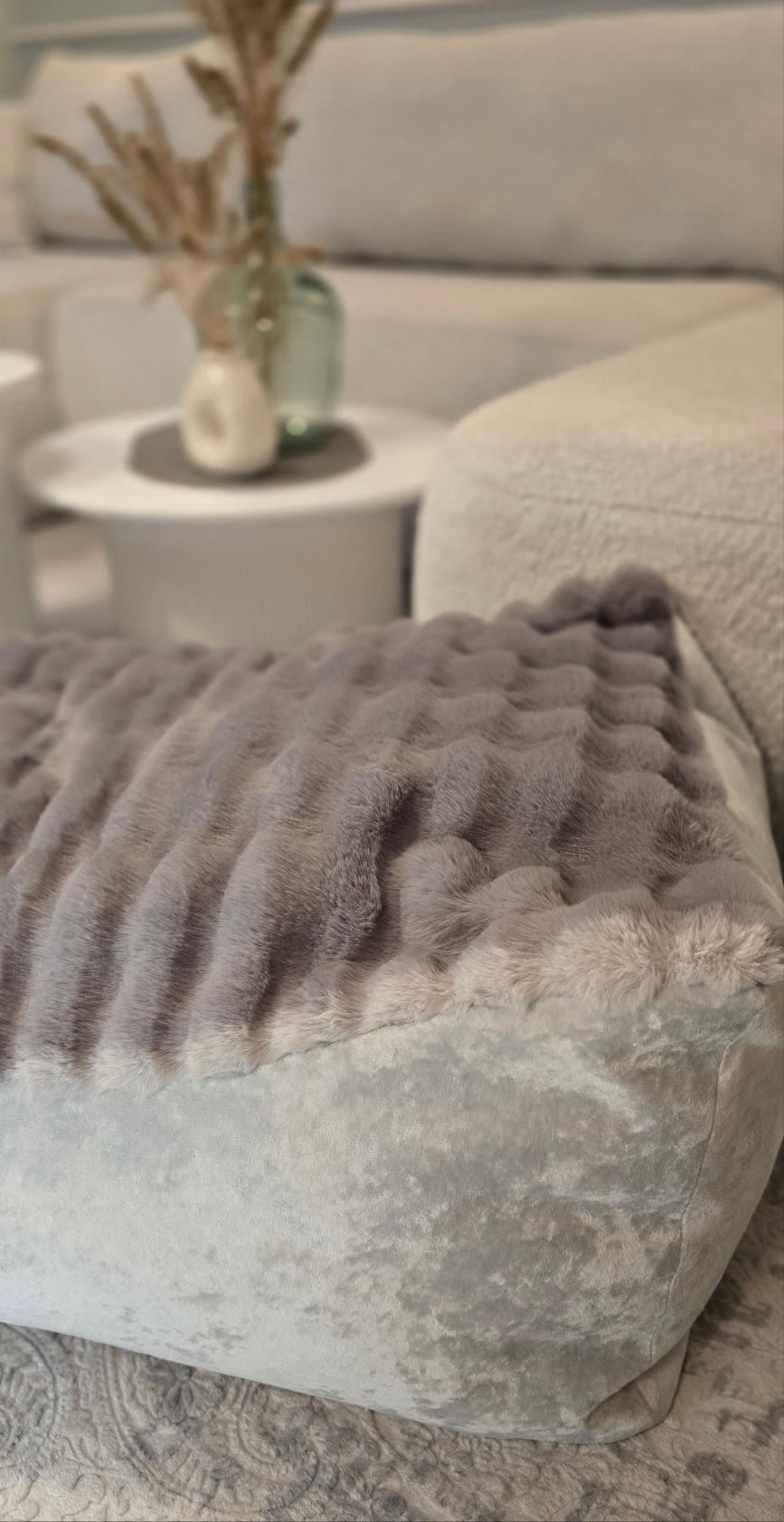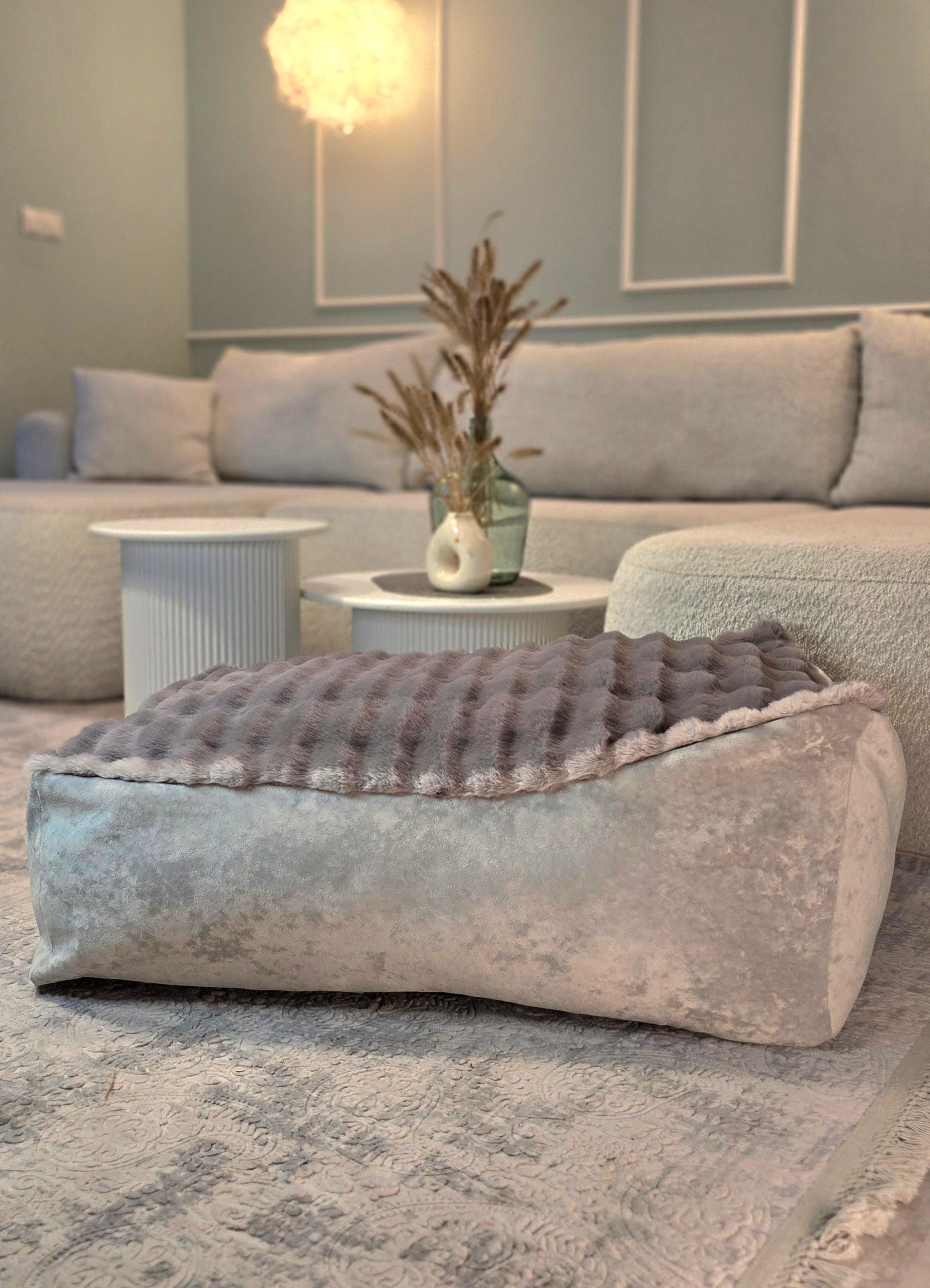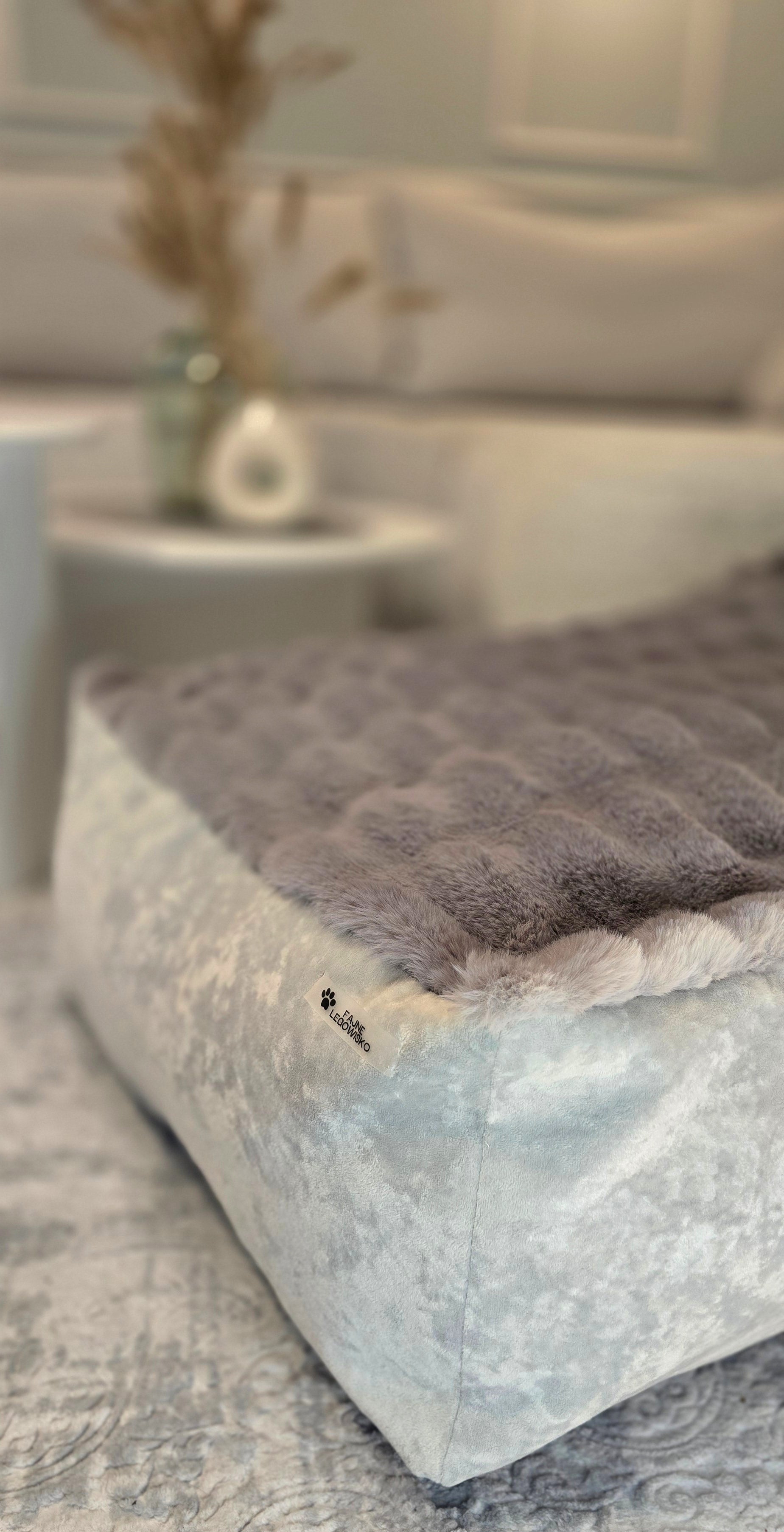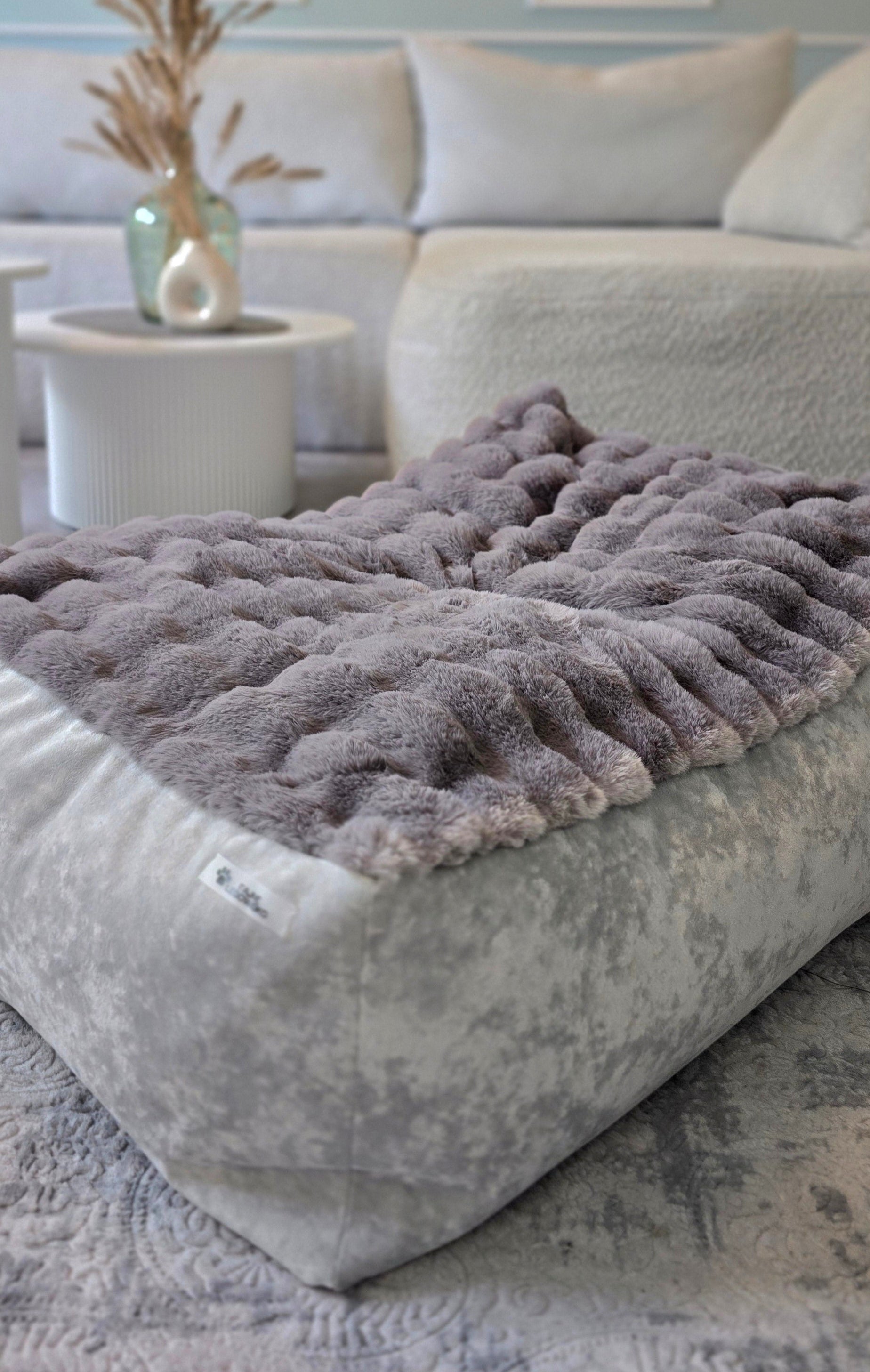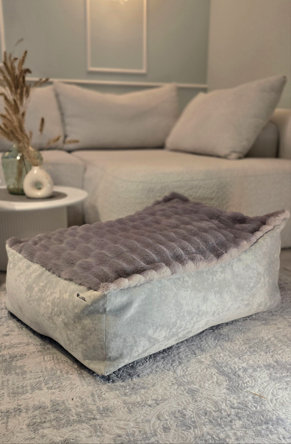 Leżanka dla psa w odcieniach szarości z futerkiem bubble, legowisko dla psa