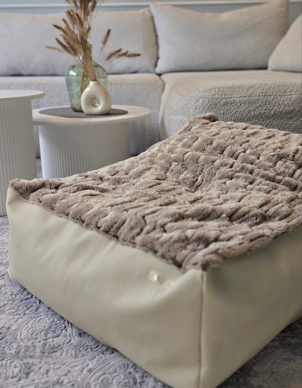 Leżanka dla psa z ekoskóry z futerkiem, legowisko dla psa