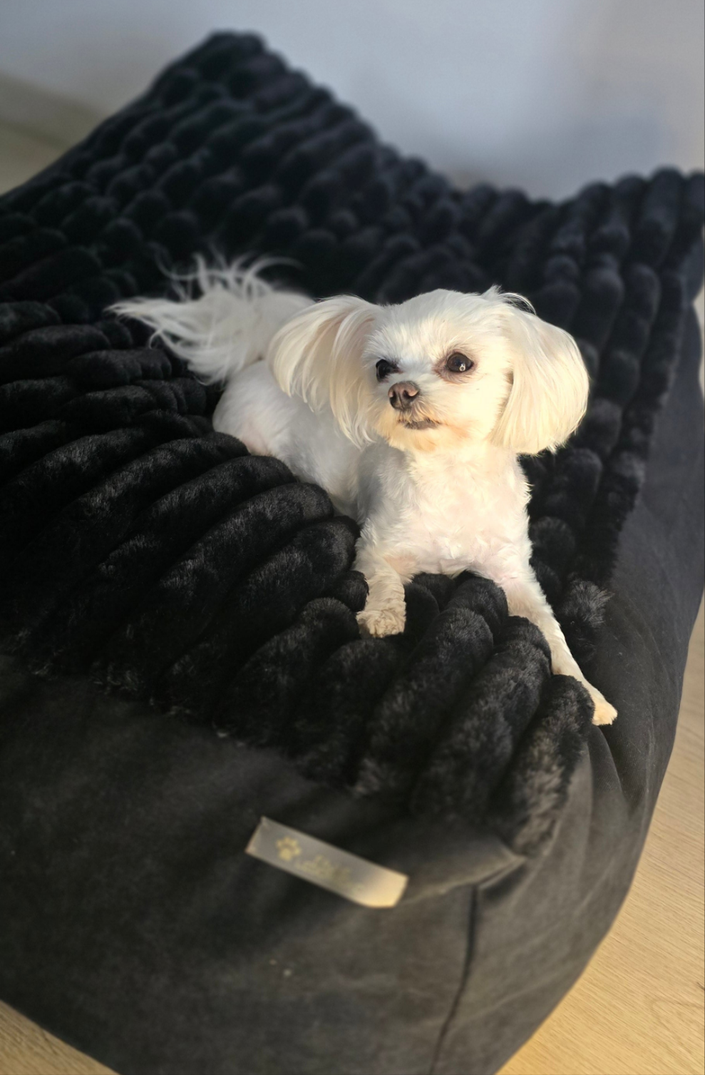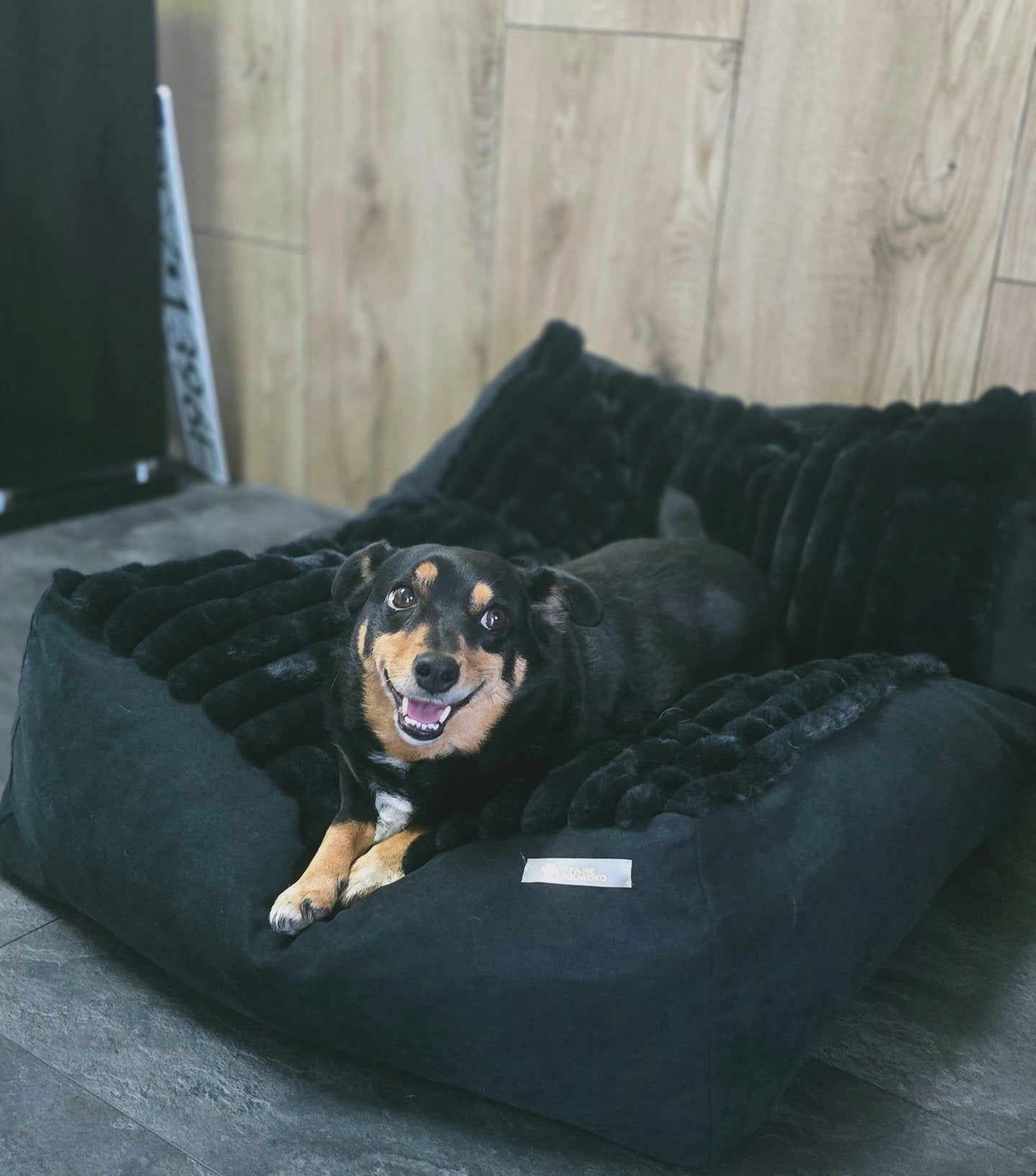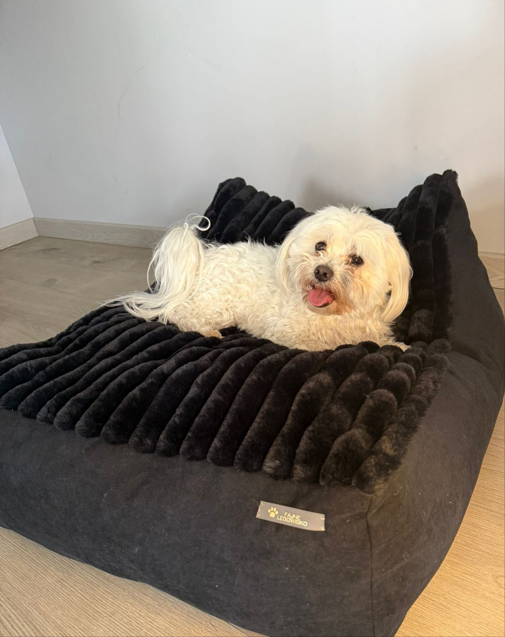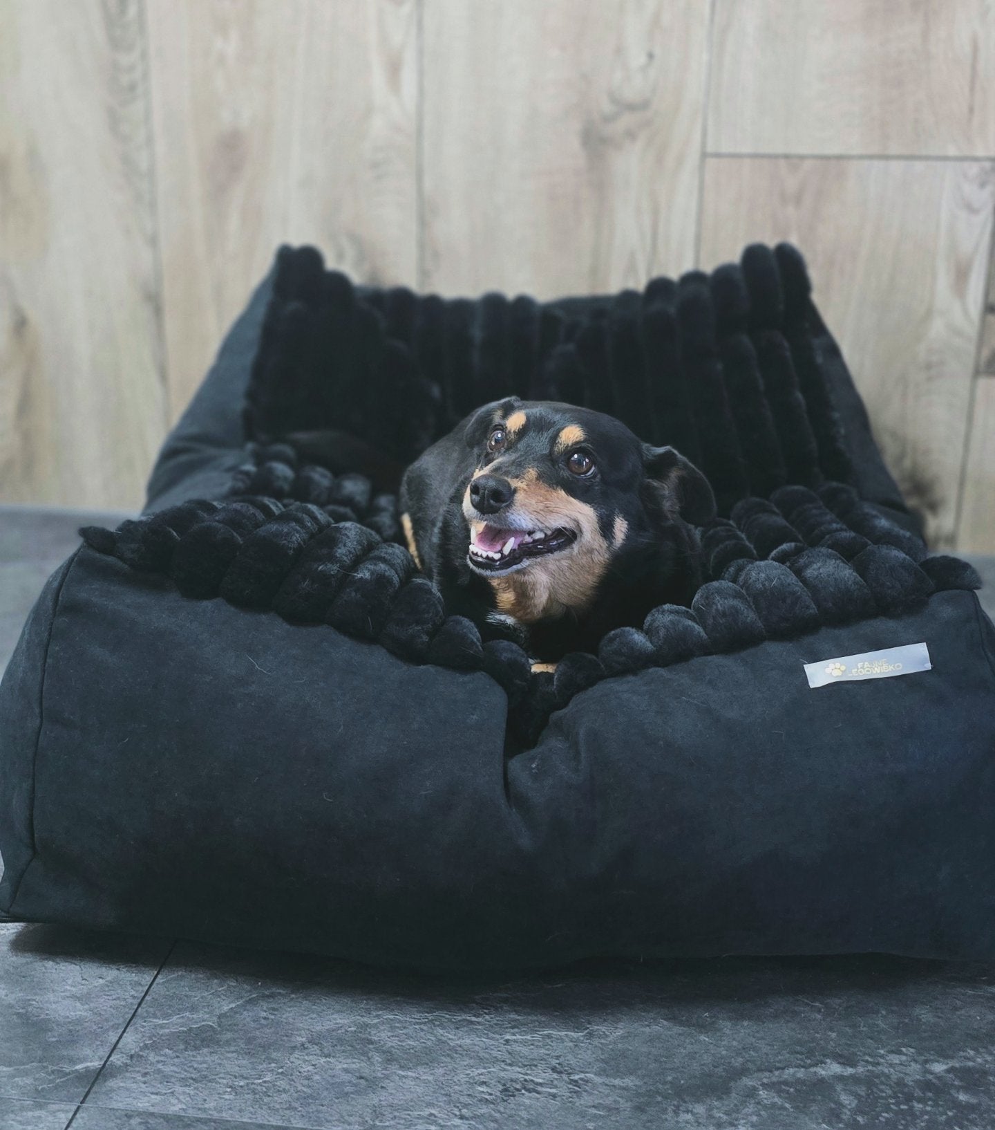 Leżanka Black – eleganckie legowisko z prążkowanym futerkiem dla wymagającego pupila