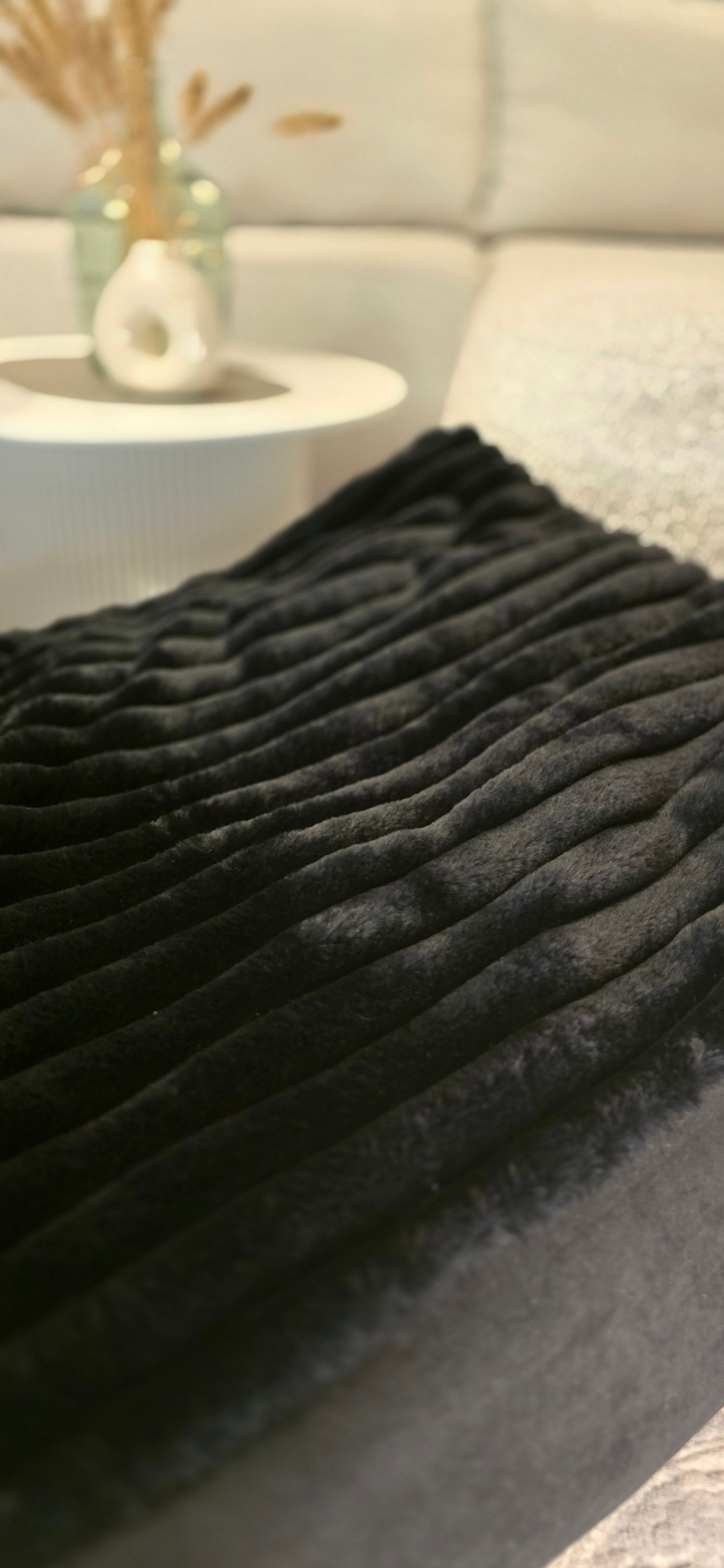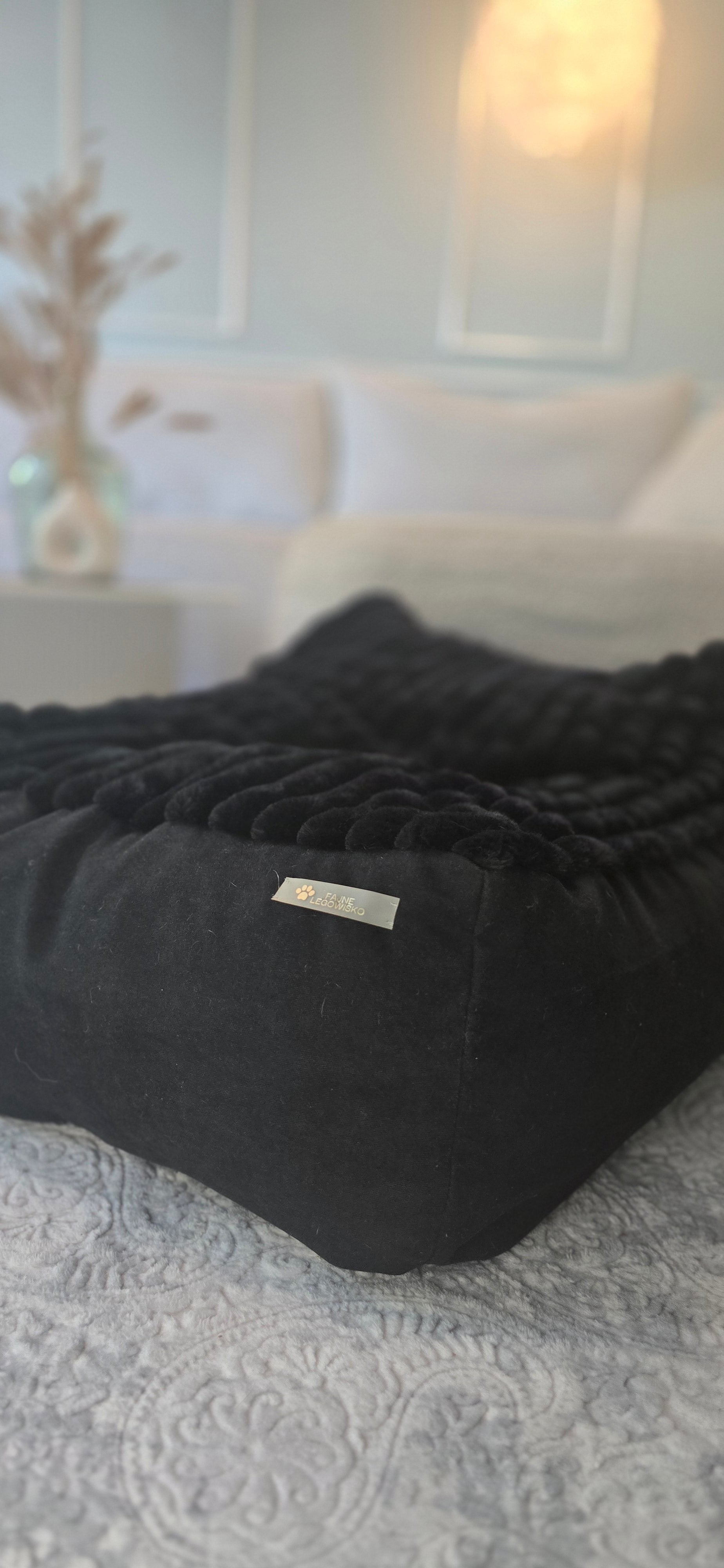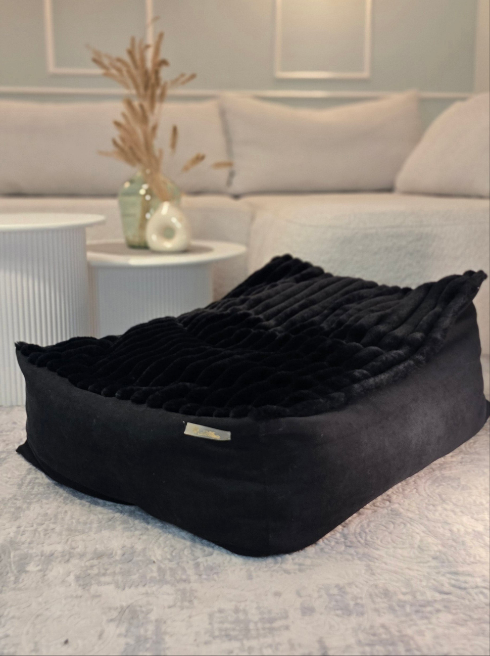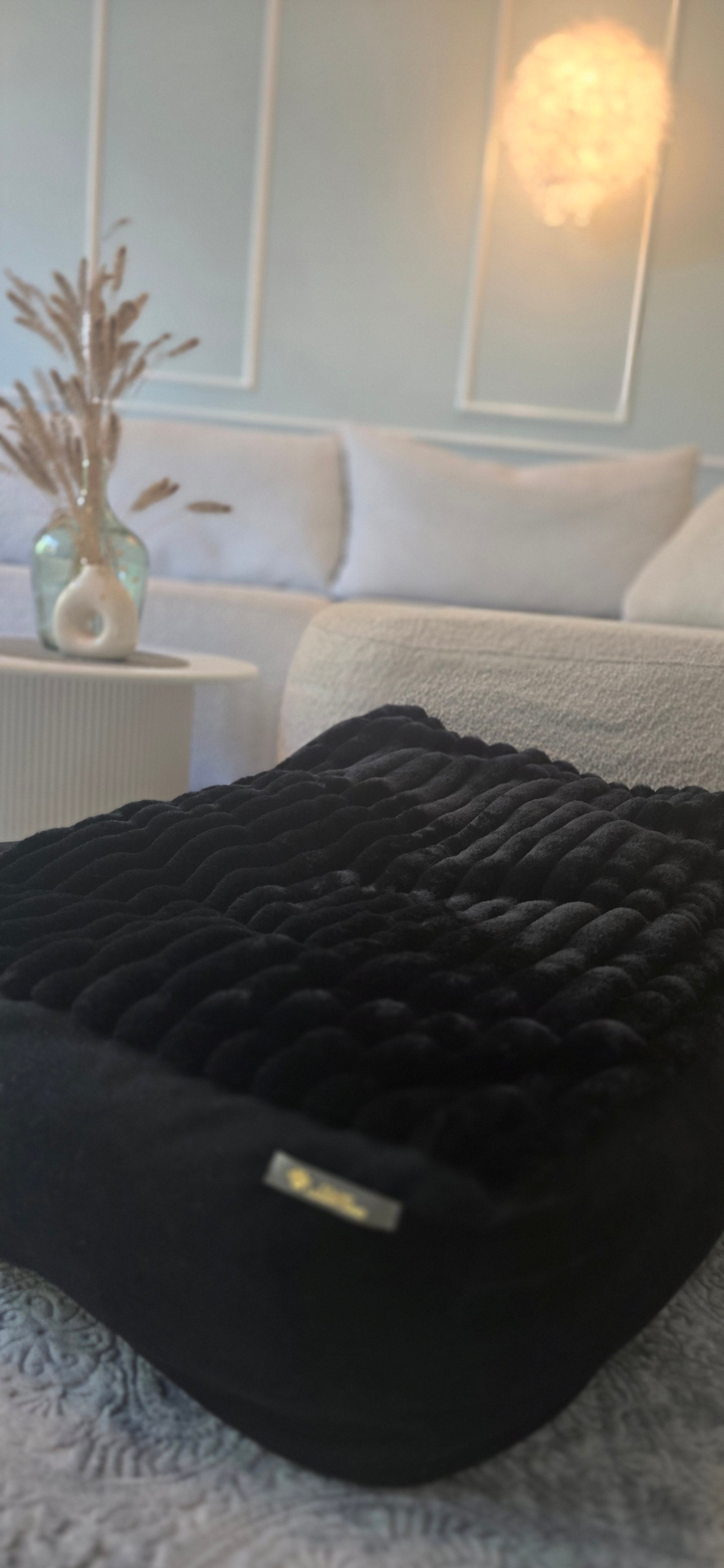 Leżanka Black – eleganckie legowisko z prążkowanym futerkiem dla wymagającego pupila