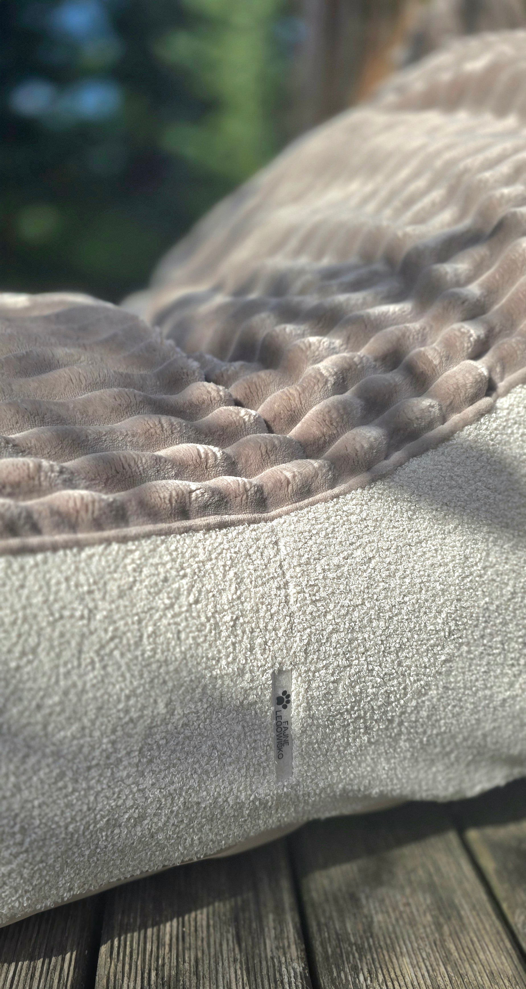 ✅ Miękkość i komfort: Połączenie tkaniny boucle z delikatnym sztruksowo-welurowym materiałem sprawia, że pufa jest niezwykle przyjemna w dotyku i zachęca do odpoczynku.