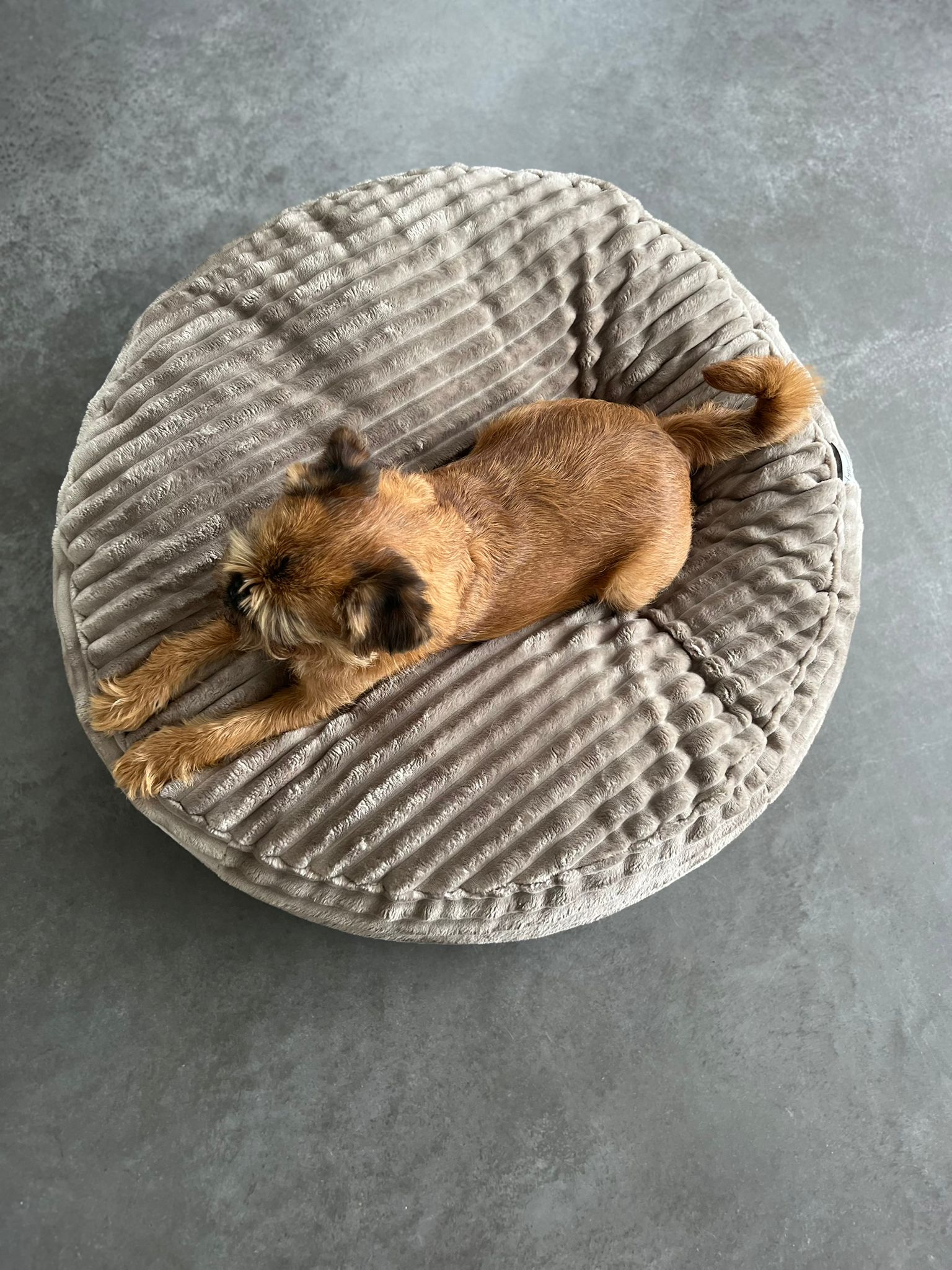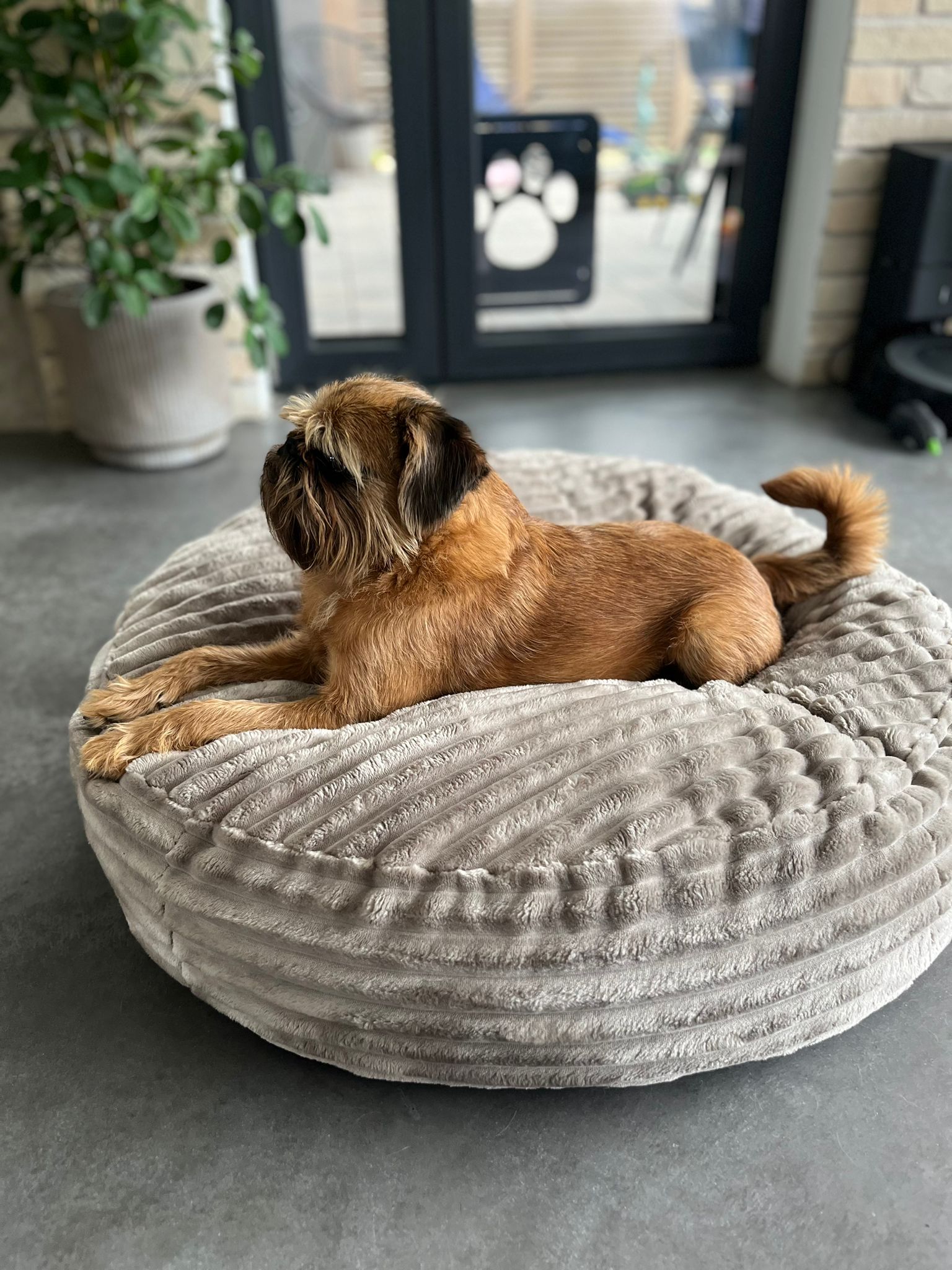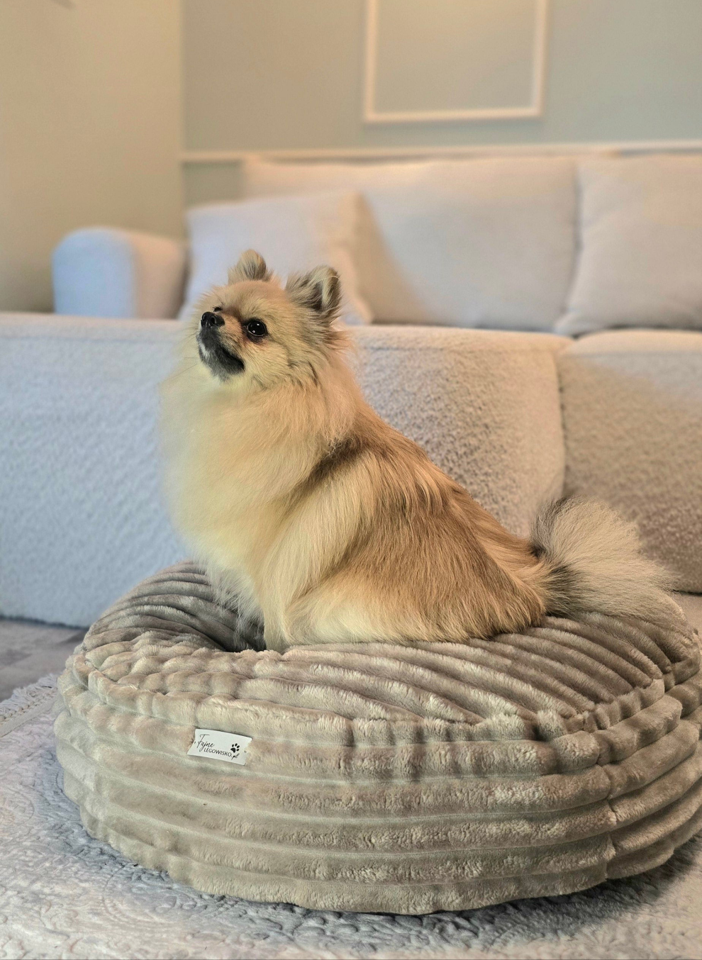 Luksusowa pufa sztruksowo-welurowa dla psów i kotów – kolor beżowy (rozmiary XS–XL)